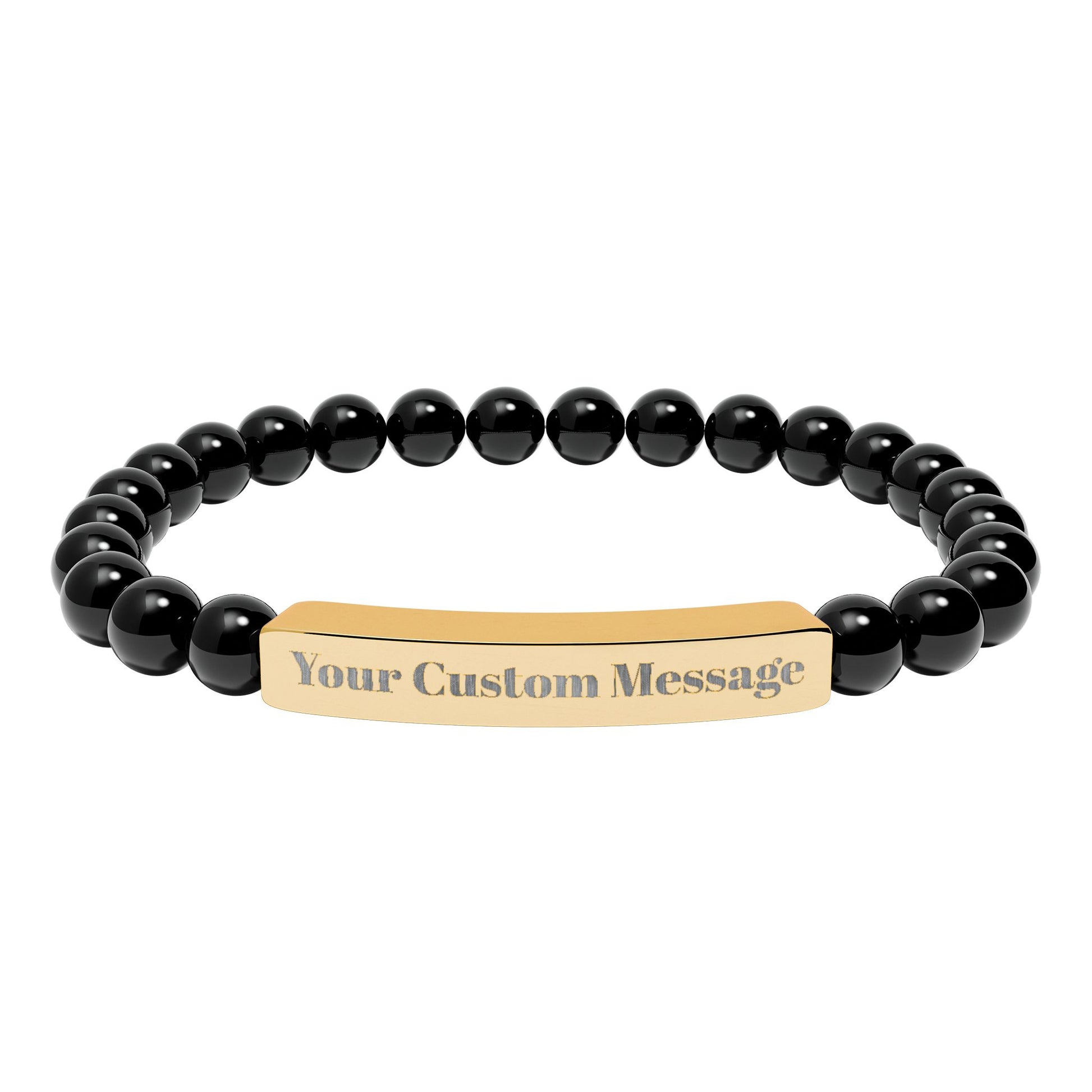 Custom Engravable Natural Stone Bead Bracelet — Custom Message Bar