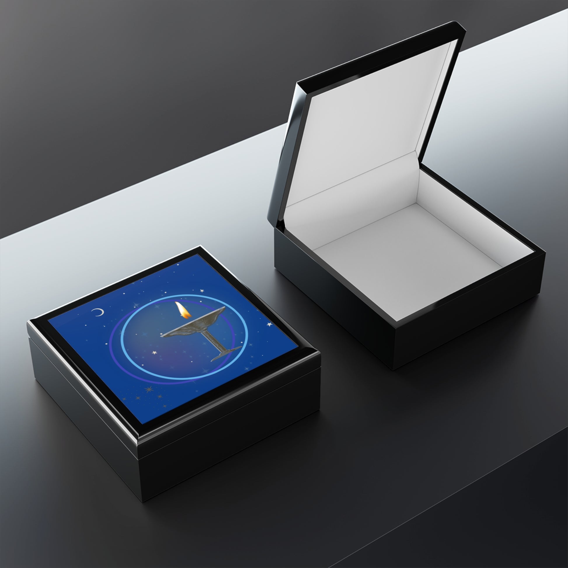 Flaming Chalice Jewelry Box | Midnight Starry Design