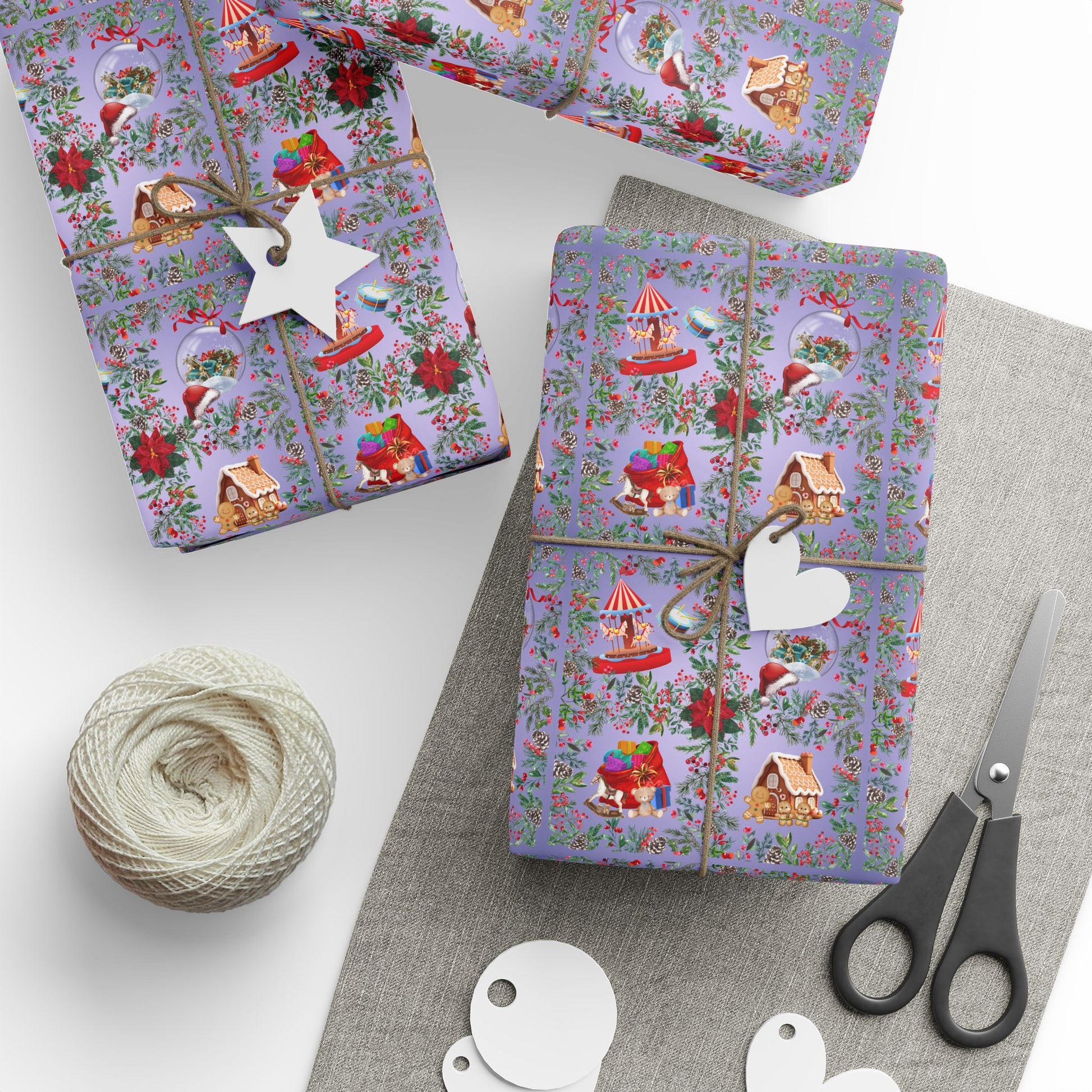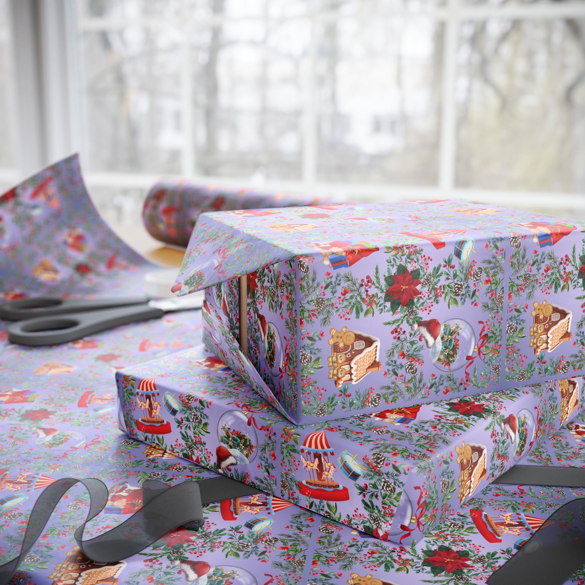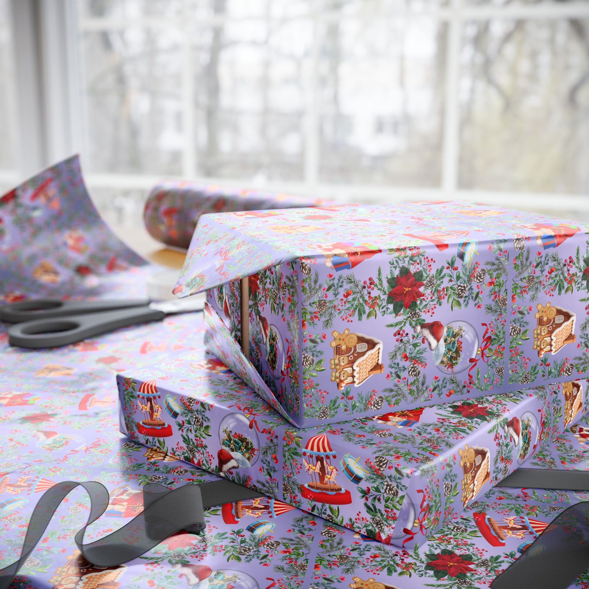 Create a sense of nostalgia with our Fond Memories Wrapping Paper featuring classic toys, a snow globe, and other holiday traditions. Perfect for wrapping gifts during the holiday season and prompting warm memories of yesteryears. Ideal for anyone looking to add a touch of vintage charm to their gift-giving experience.