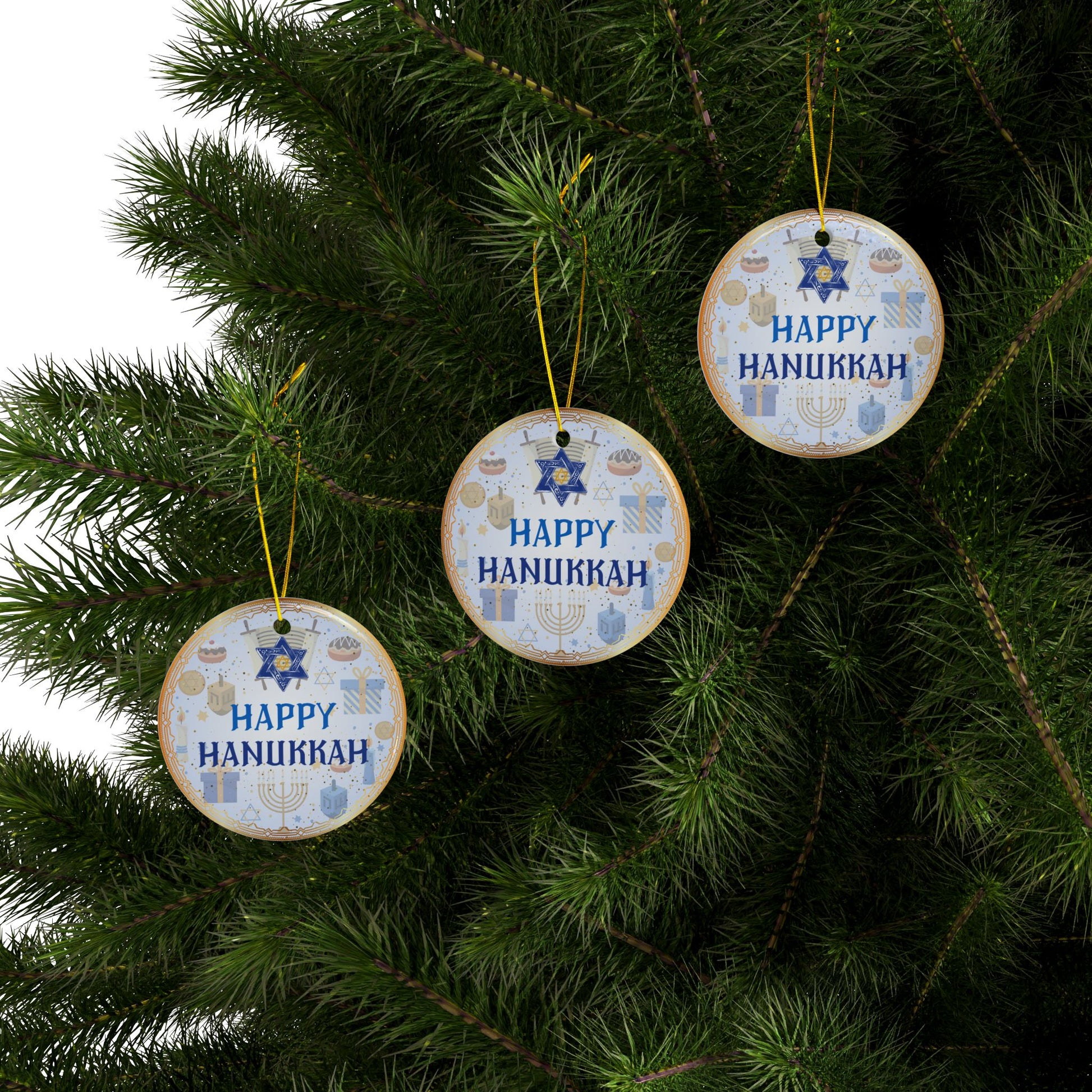 Happy Hanukkah | Jewish Inspired | Heirloom Ceramic Ornaments (1pc, 3pcs, 5pcs, 10pcs)