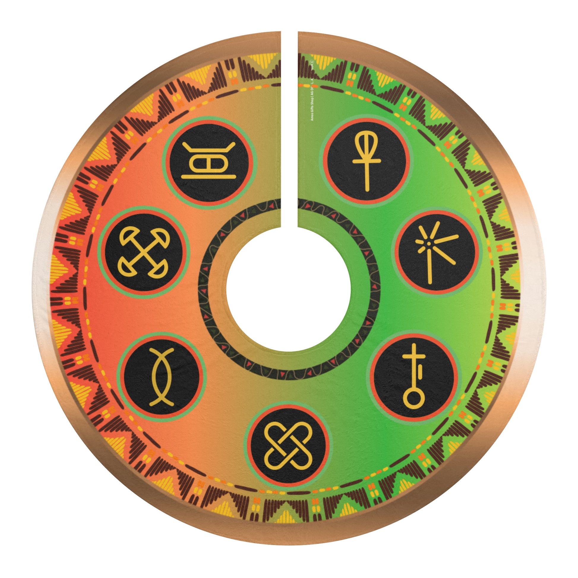 Celebrate Kwanzaa with this Nguzo Saba inspired holiday tree skirt made from soft and plush fleece material. Perfect for adding a touch of culture and tradition to your holiday decor. Ideal for those looking to embrace the spirit of Kwanzaa and decorate their home with meaningful pieces.