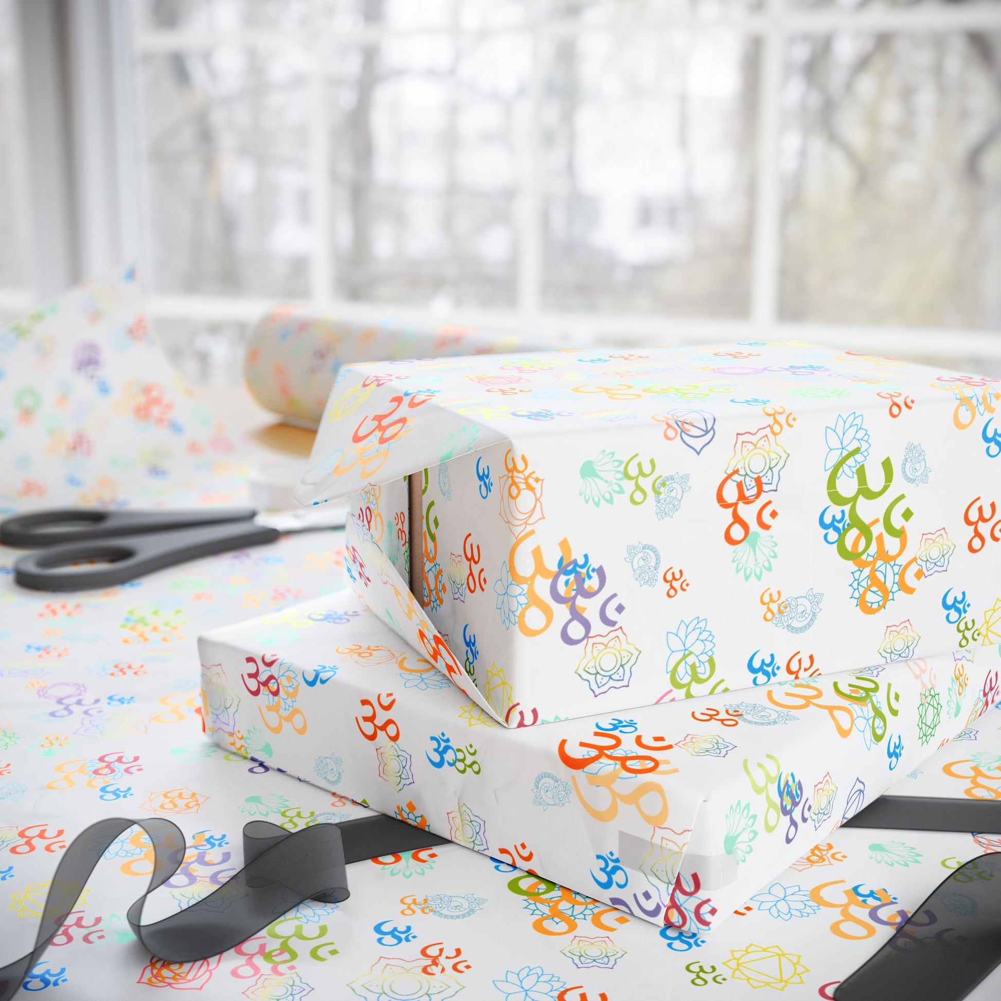 Om | Gift Wrap Papers, gifts of peace, give calm, love and joy, perfect for any occasion. These wrapping papers bring a sense of tranquility and serenity to your gifts, making them perfect for birthdays, holidays, and any special occasion. Ideal for those who appreciate mindfulness and peace in their lives.
