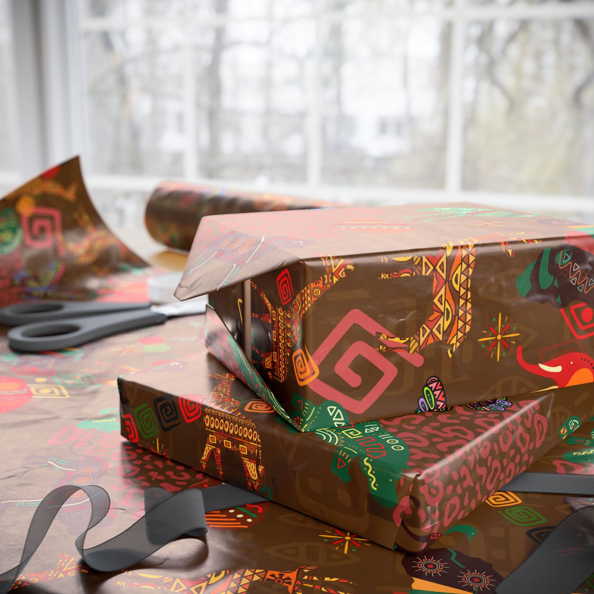 Wrapping Papers - Savannah Safari (Deep Earth) Animals and Africa Prints Gift Wrap